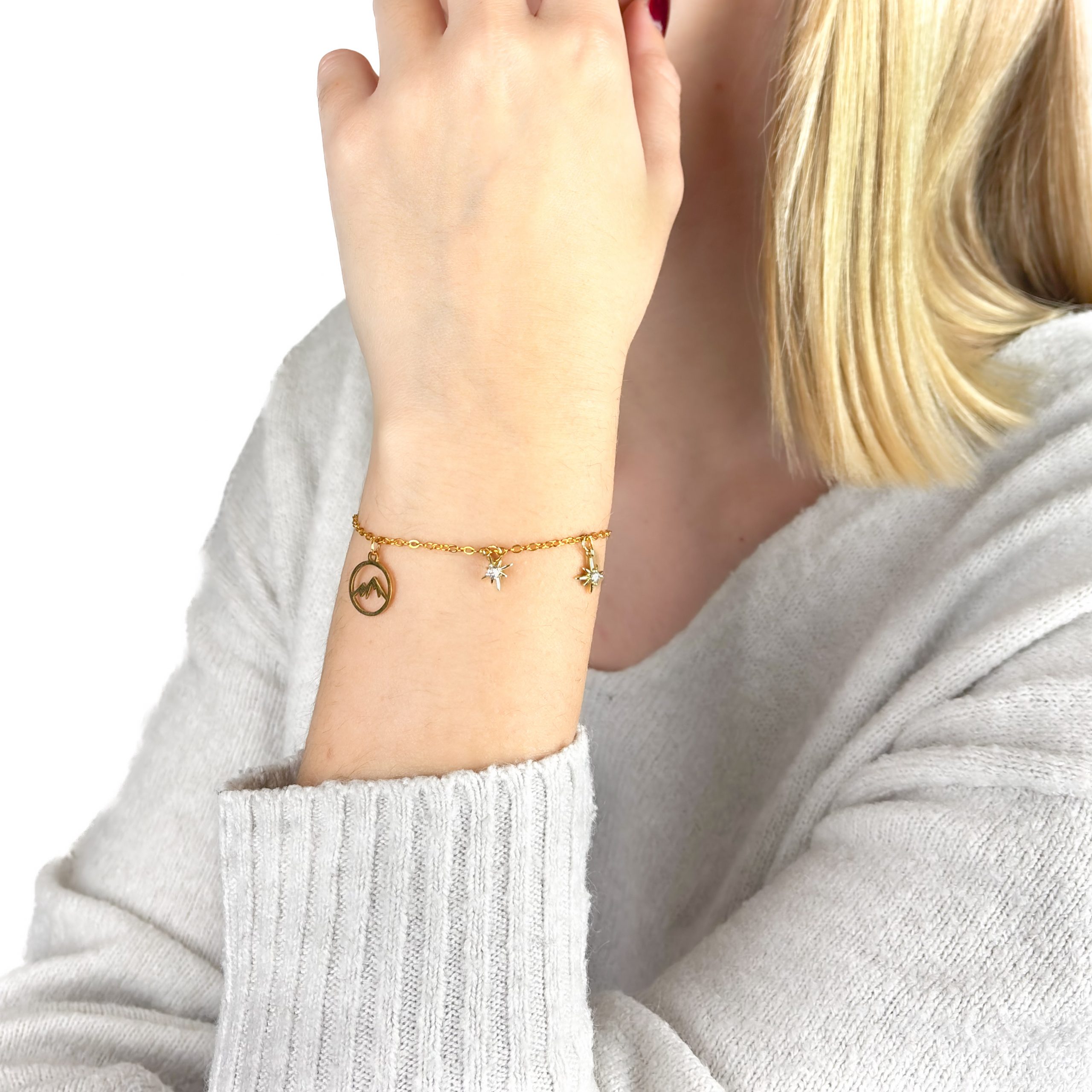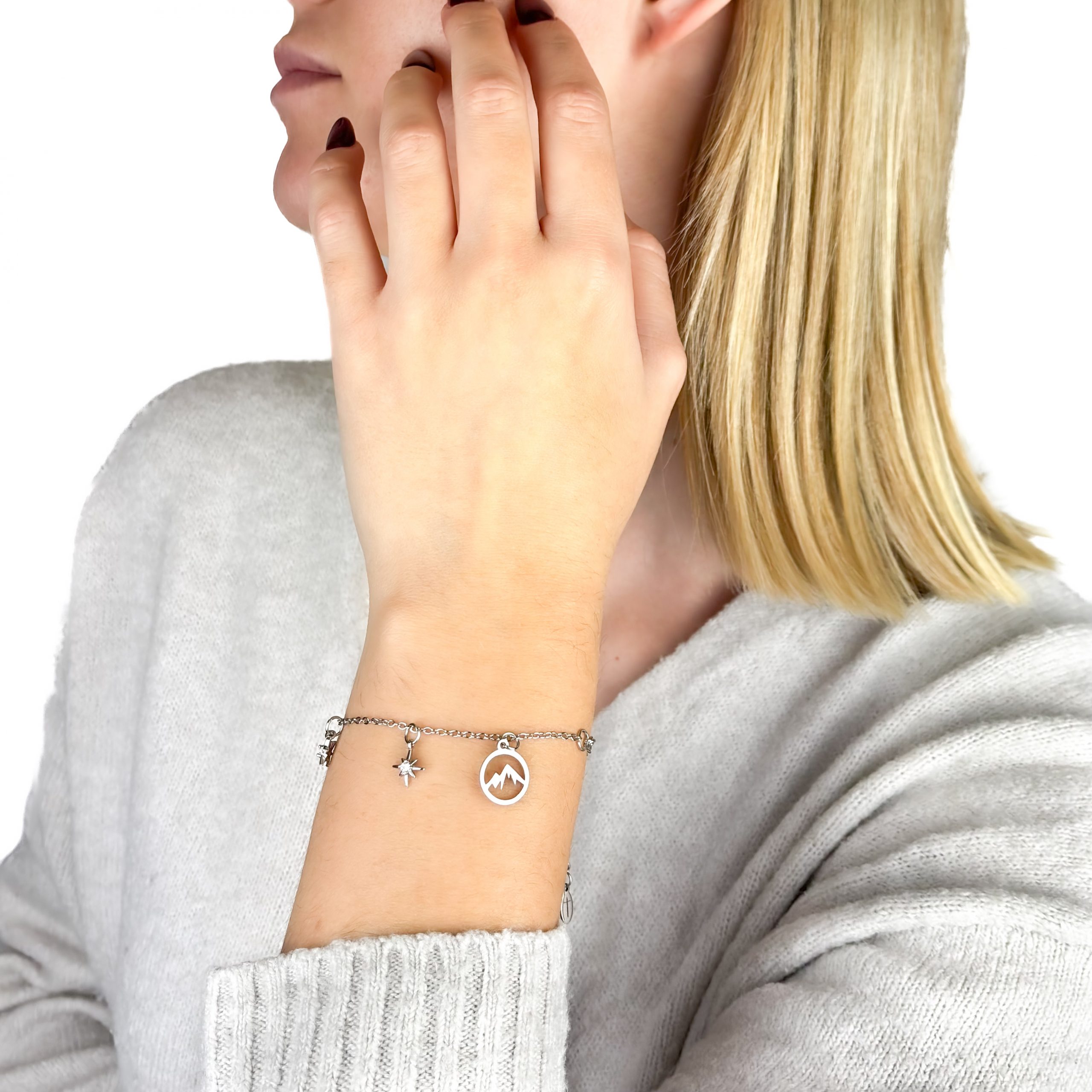 The chain bracelet measures approximately 20 cm in length. This standard size provides a comfortable fit for most wrists. It allows for smooth movement and pairs beautifully with different types of charms. Lightweight and versatile, it adapts easily to everyday use or special occasions.