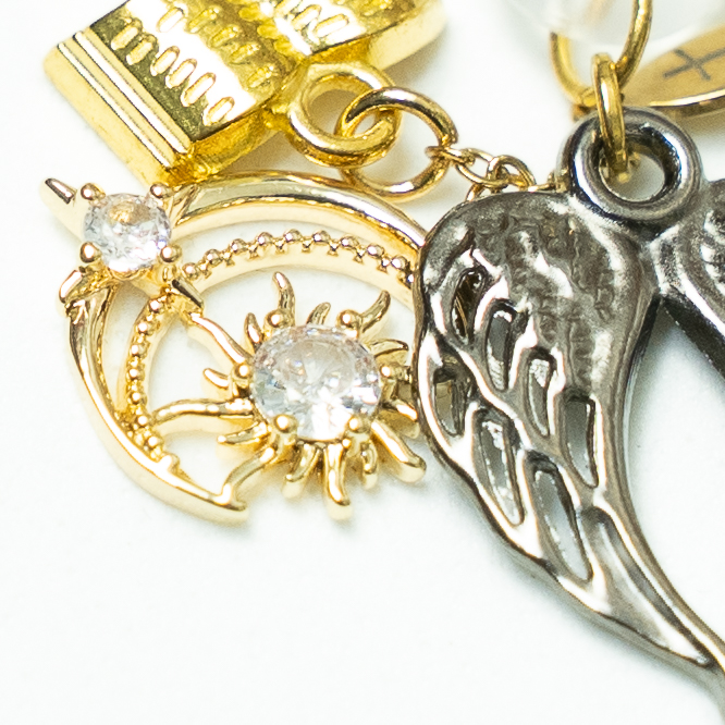 The Hunt DustCharm Crescent City honors Hunt Athalar, Bryce Quinlan’s loyal partner, and his complex, heroic journey. Each gold pendant carries deep symbolism: the black wings representing his fallen past and resilience, the crescent moon and star symbolizing the heart of Lunathion, and a book for the stories and secrets of Crescent City. This charm is a must-have for fans who carry the courage and devotion of Hunt wherever they go.