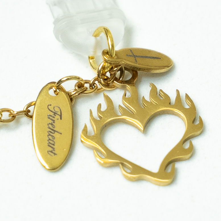 The flaming heart shines as a symbol of Aelin’s passion and the fire that refuses to fade. The Fireheart tag echoes her title and the legacy she carved through pain and triumph. Finally, the miniature book connects fans to her saga, reminding them that even the fiercest battles can end in light.