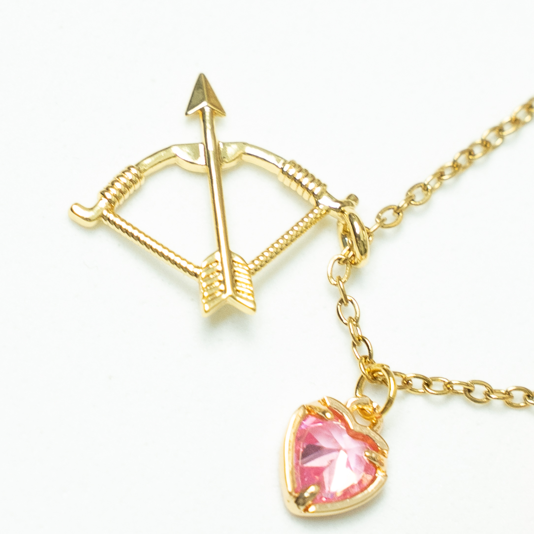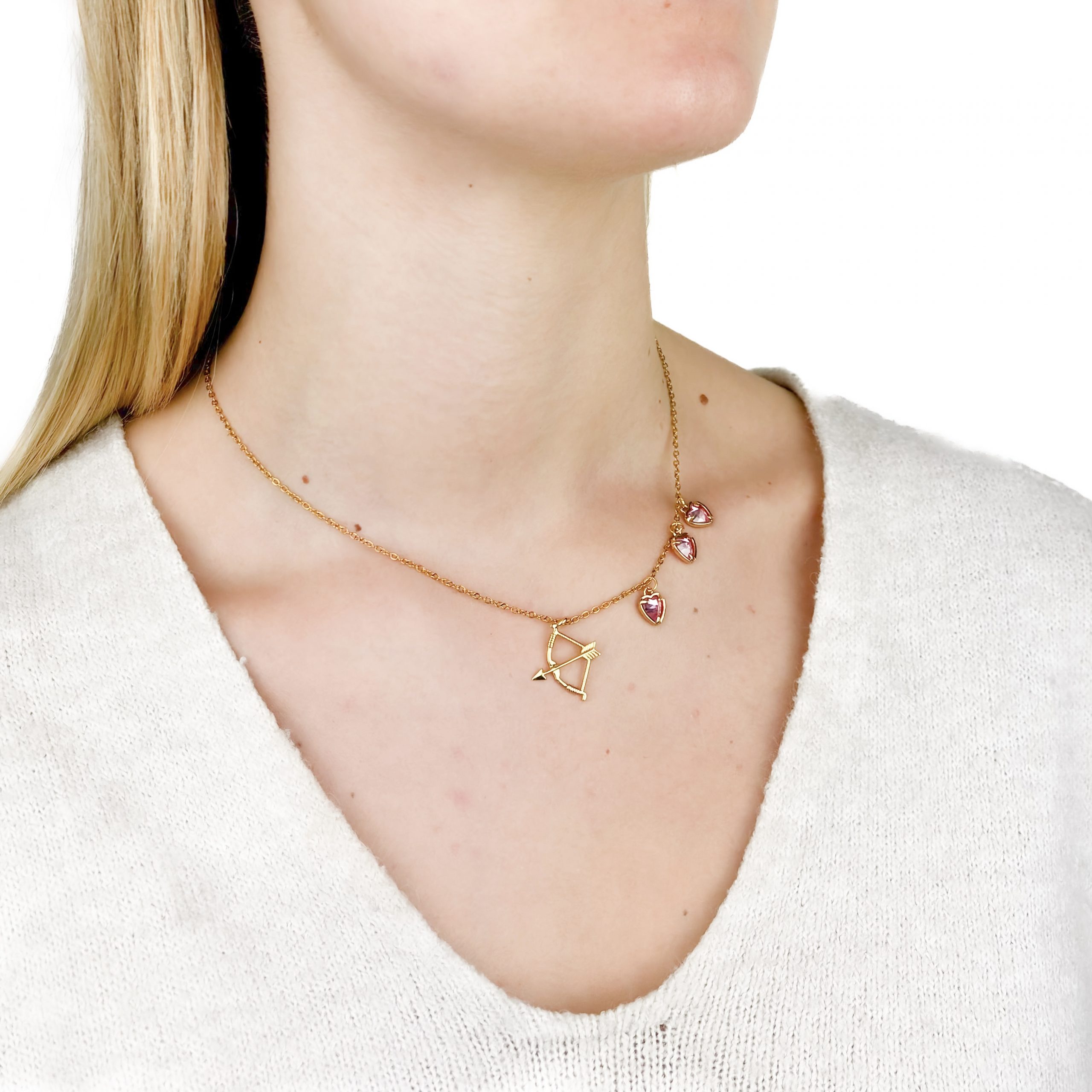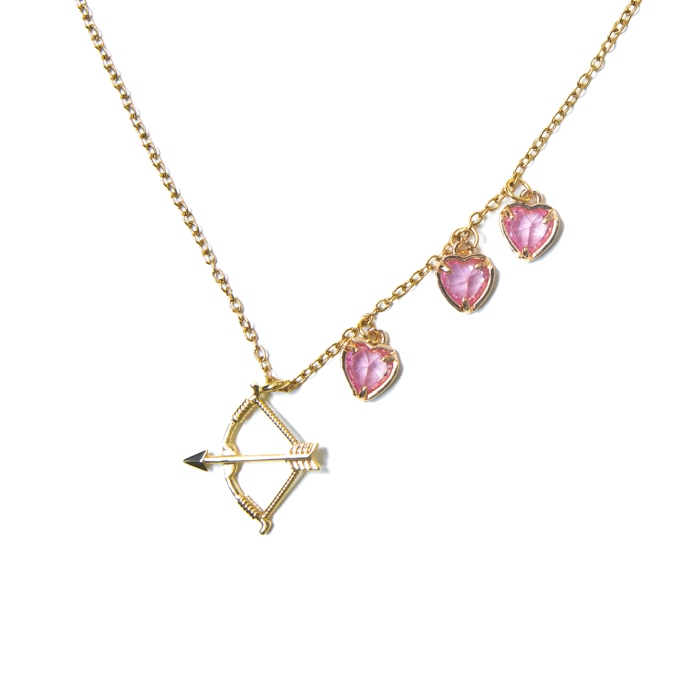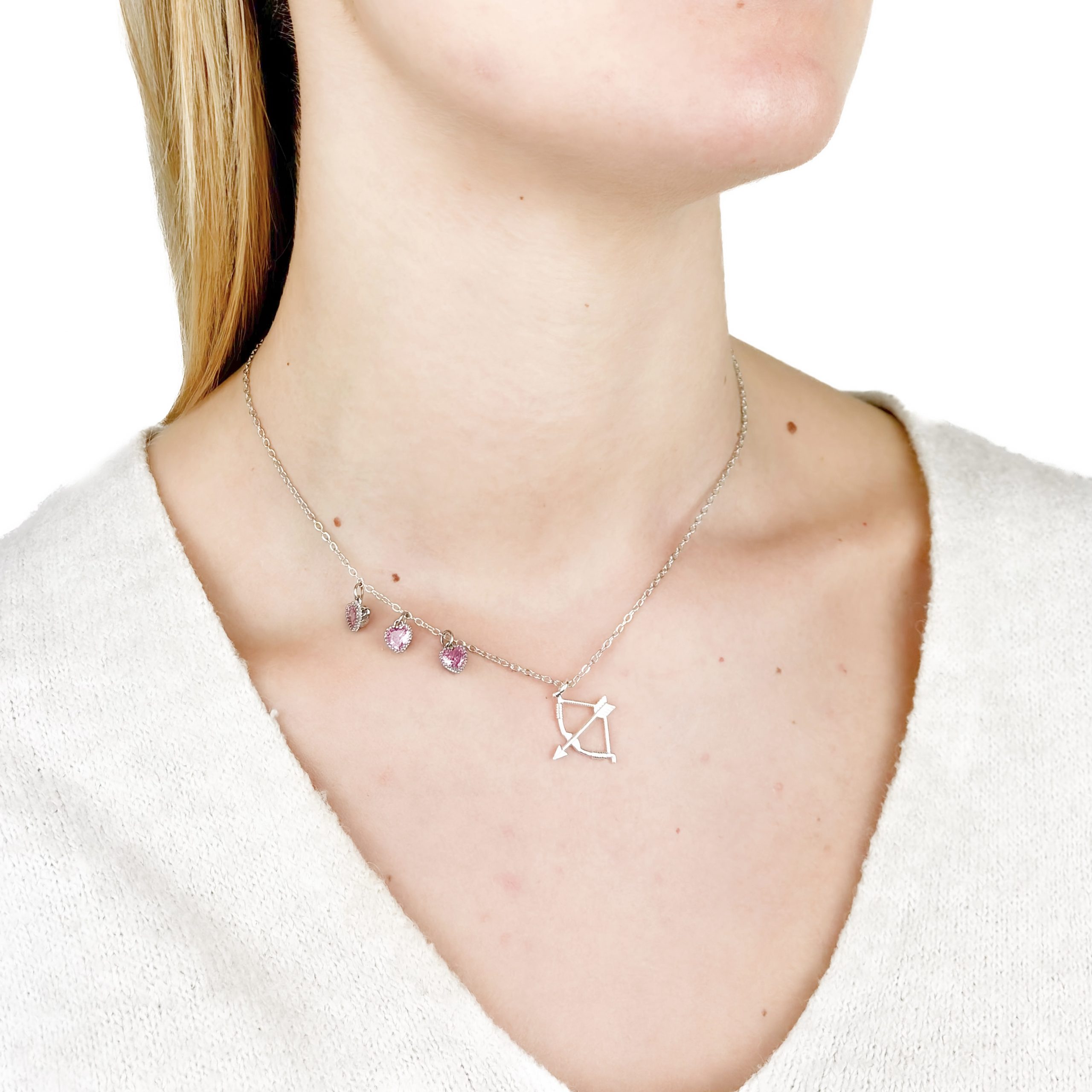 The Archer Necklace OUABH celebrates hope, love, and promises. Featuring a silver bow and three pink crystal hearts, it embodies faith, fairytale magic, and the courage to believe in happy endings.